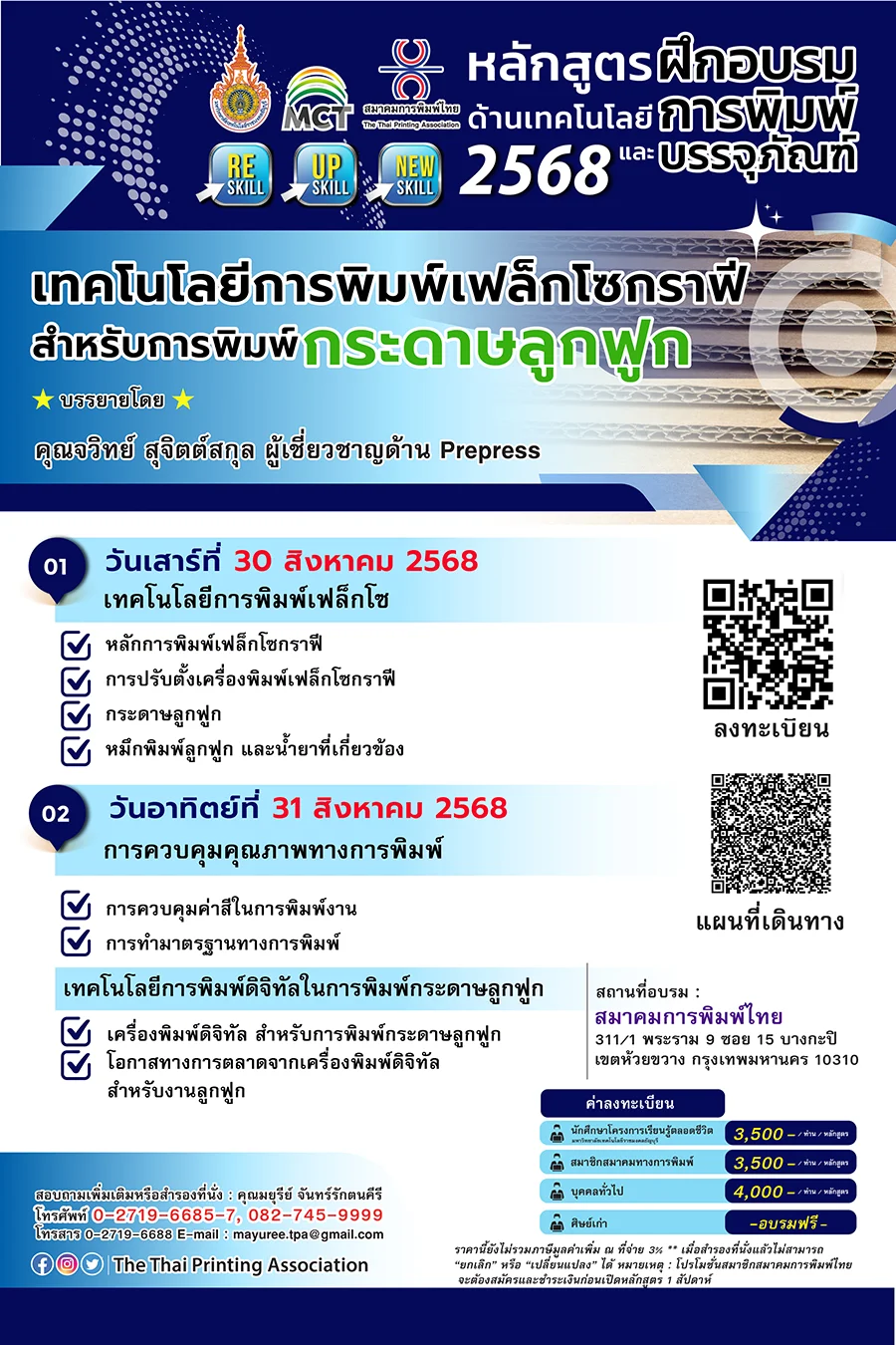 หมายเหตุ : โปรโมชั่นสมาชิกสมาคมการพิมพ์ไทยจะต้องสมัครและชำระเงินก่อนเปิดหลักสูตร 1 สัปดาห์