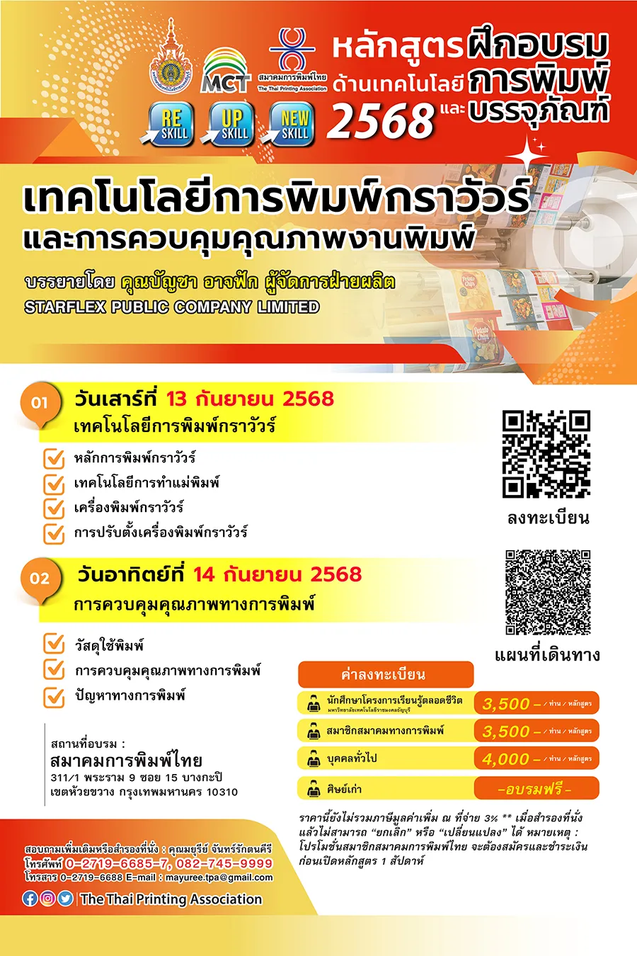 หมายเหตุ : โปรโมชั่นสมาชิกสมาคมการพิมพ์ไทยจะต้องสมัครและชำระเงินก่อนเปิดหลักสูตร 1 สัปดาห์