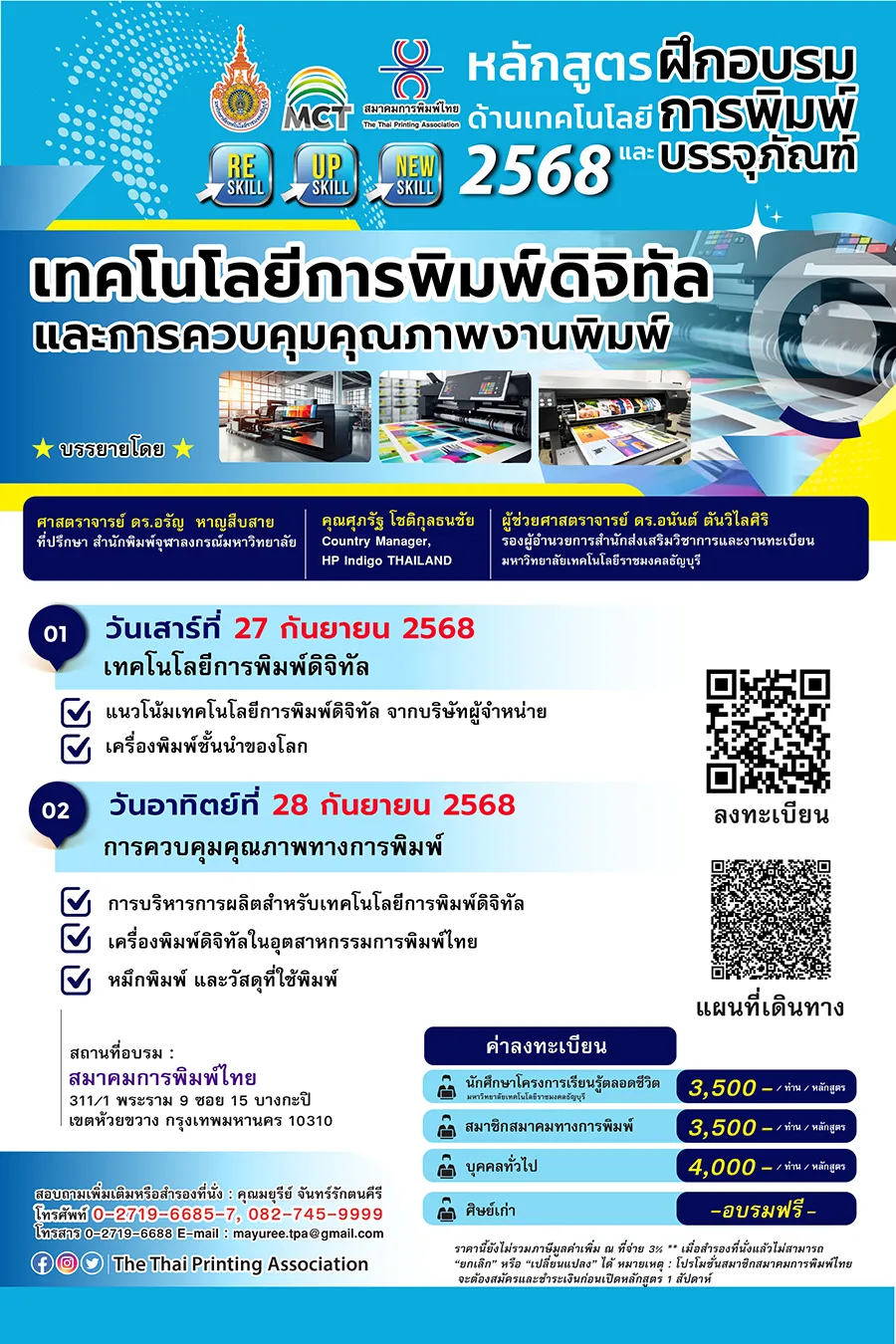 หมายเหตุ : โปรโมชั่นสมาชิกสมาคมการพิมพ์ไทยจะต้องสมัครและชำระเงินก่อนเปิดหลักสูตร 1 สัปดาห์