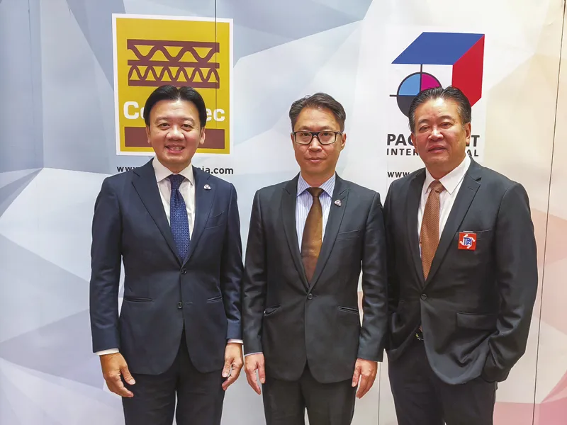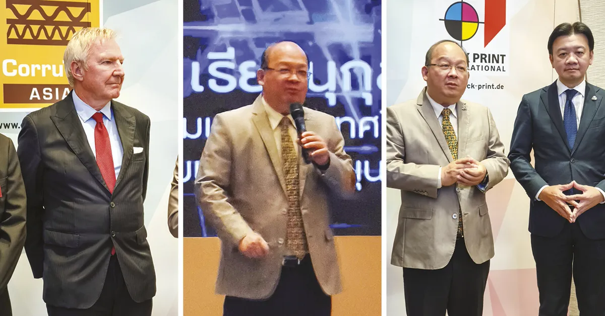 คุณวิวัฒน์ อุตสาหจิต นายกสมาคมการบรรจุภัณฑ์ไทย, คุณพงศ์ธีระ พัฒนพีระเดช นายกสมาคมการพิมพ์ไทย, คุณชาธิป ตั้งกุลไพศาล เลขาธิการสมาคมบรรจุภัณฑ์กระดาษลูกฟูกไทย