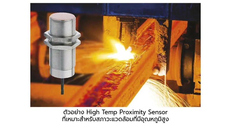คุณสมบัติของ Proximity Sensor แบบทั่วไปนั้น จะสามารถทนอุณหภูมิสูงสุดได้เพียง 70 องศา ซึ่งอาจไม่เพียงพอสำหรับการทำงานในอุตสาหกรรมบางประเภท เช่น อุตสาหกรรมเหล็ก เนื่องจากสภาพแวดล้อมในการทำงานนั้นมีอุณหภูมิที่สูงมาก ด้วยเหตุนี้จึงจำเป็นต้องอาศัย Prox. ชนิดพิเศษ เพื่อช่วยให้ทนต่อสภาพแวดล้อมที่มีอุณหภูมิสูงได้