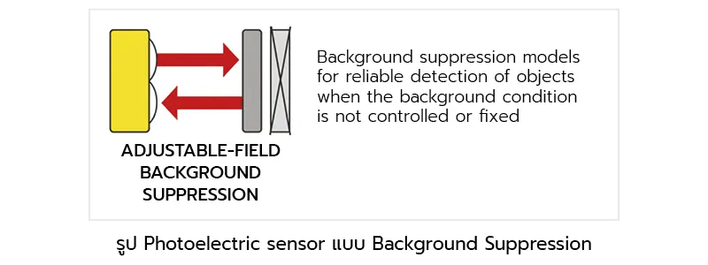 เป็นโฟโต้เซ็นเซอร์ชนิดหนึ่งที่อยู่ในกลุ่มของ Diffuse Mode โดยโฟโต้เซ็นเซอร์แบบ Background Suppression นั้น ถูกออกแบบมาให้แก้ปัญหาในการตรวจจับวัตถุที่มีตำแหน่งในการตรวจจับวางอยู่ใกล้กับตัวพื้นหลัง ซึ่งอาจมีลักษณะของพื้นผิวที่ใกล้เคียงกับชิ้นงานจนทำให้บางครั้งตัวเซ็นเซอร์แบบธรรมดาไม่สามารถแยกแยะระหว่างชิ้นงานกับพื้นหลังได้ ทำให้การทำงานเกิดความผิดพลาด