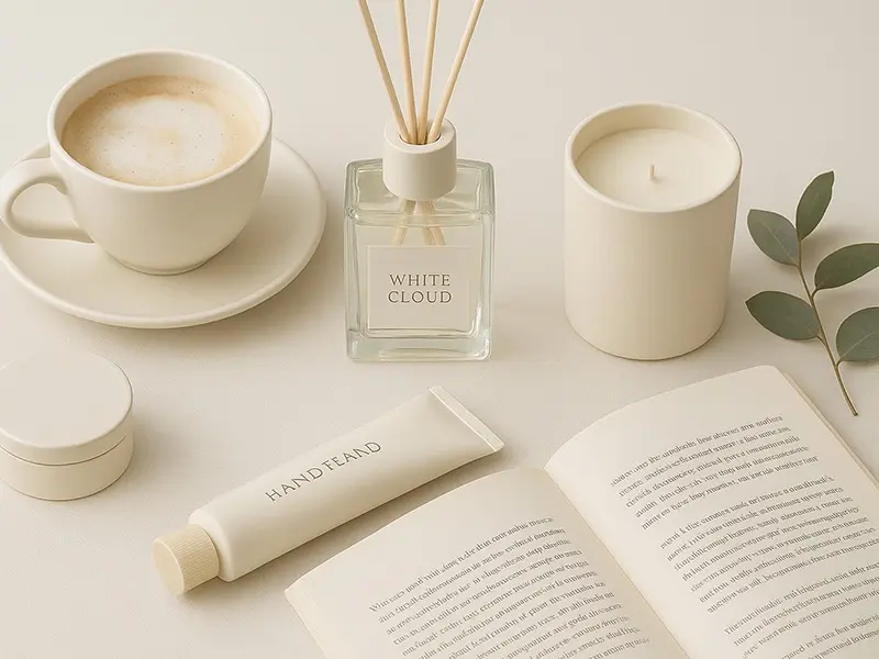 3. กลุ่มไลฟ์สไตล์และของใช้ภายในบ้าน ใช้โทน Cloud Dancer ร่วมกับภาพถ่ายสไตล์ Natural Light เพื่อสื่อความอบอุ่นแบบ Scandinavian Minimal
