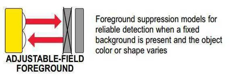 สำหรับชิ้นงานหรือวัตถุที่มีสีหรืออัตราการสะท้อนไม่เท่ากันทั้งชิ้นงาน แต่ด้านหลังมี Background ที่มีสีเดียวกันที่สม่ำเสมอ เราอาจจะใช้ตัวเซ็นเซอร์แบบ Foreground Suppression ในการตรวจจับเฉพาะ Background แล้วให้ตัวชิ้นงานที่วิ่งผ่านเป็นตัวตัดลำแสงหรือบังลำแสงแทนก็ได้
