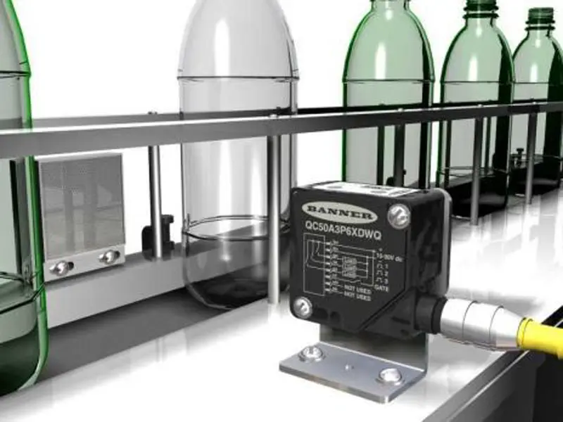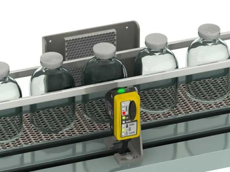 สำหรับงานตรวจจับของเหลวในขวดพลาสติกใสที่มีสีที่แตกต่างกันบนสายพานคอนเวย์เยอร์เดียวกันนั้น เป็นงานยากมากถ้าใช้ Photoelectric sensor แบบธรรมดา เนื่องจากความต้องการแยกว่าขวดใดเติมน้ำหรือไม่ได้เติม รวมถึงการติดสลากหรือไม่ได้ติด