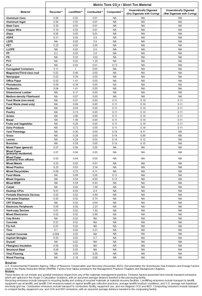 กระบวนการใช้ความร้อนสูงเพื่อเผาไหม้สารอินทรีย์ในขยะ ทำให้ขยะมีปริมาตรและมวลลดลง เช่น กลถ่มขยะอันตราย ขยะติดเชื้อ เป็นต้น โดยหลังจากเราทราบประเภทขยะและวิธีจัดการแล้ว ก็สามารถพิจารณาเลือกใช้ค่า สัมประสิทธิคาร์บอน หรือ Emission Factor (EF) ของการจัดการขยะแต่ละประเภทตามตารางด้านล่างนี้ได้