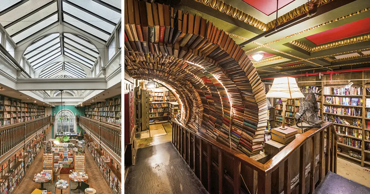 2. The Last Bookstore: ตั้งอยู่ในดาวน์ทาวน์ลอสแอนเจลิส The Last Bookstore เป็นตัวอย่างของพื้นที่ที่ผสมผสานร้านหนังสือ ศิลปะ และบรรยากาศแบบบาร์เข้าไว้ด้วยกัน ภายในร้านมีโซนอ่านหนังสือ มุมจัดแสดงศิลปะ และพื้นที่จัดอีเวนต์ที่บางครั้งเสิร์ฟเครื่องดื่มในบรรยากาศกึ่งเลานจ์