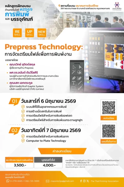 หมายเหตุ : โปรโมชั่นสมาชิกสมาคมการพิมพ์ไทยจะต้องสมัครและชำระเงินก่อนเปิดหลักสูตร 1 สัปดาห์