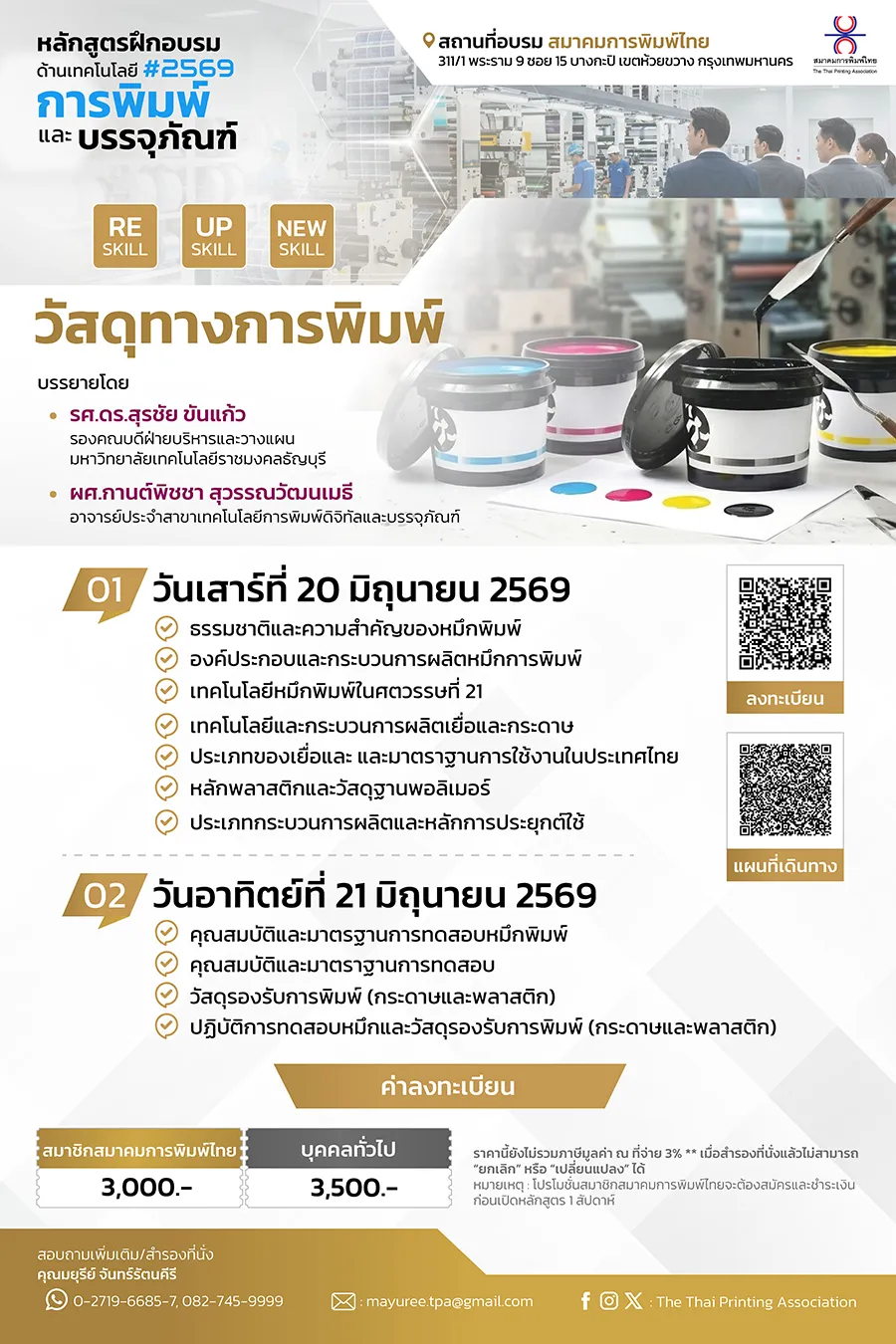 หมายเหตุ : โปรโมชั่นสมาชิกสมาคมการพิมพ์ไทยจะต้องสมัครและชำระเงินก่อนเปิดหลักสูตร 1 สัปดาห์