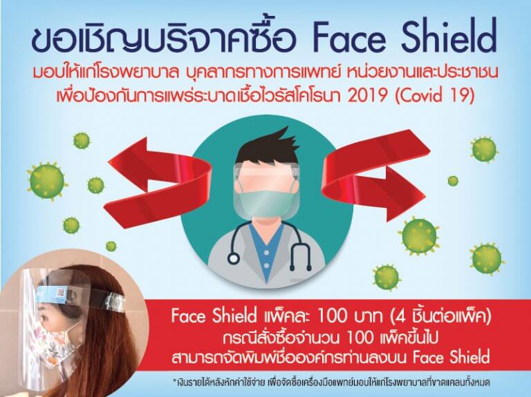 ขอเชิญบริจาคซื้อ Face Shield Covid-19