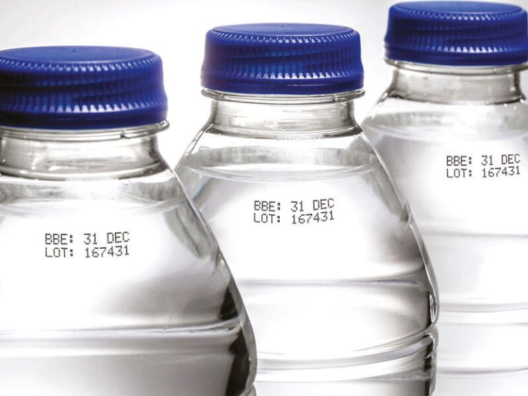 โซลูชั่นการพิมพ์เลขรหัสทางอุตสาหกรรมสำหรับขวดและภาชนะพลาสติก PET สำหรับระบุวันเดือนปีผลิต สิ้นอายุ31 สิงหาคม 202311 กันยายน 2023
