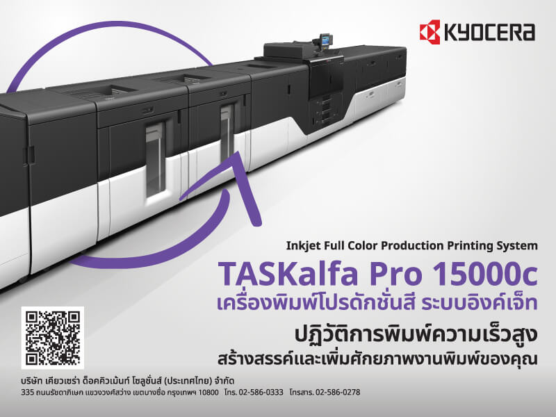 TASKalfa Pro 15000c เครื่องพิมพ์ดิจิตัลคุณภาพ พิมพ์งานปริมาณสูง เพื่องานพิมพ์เชิงพาณิชย์