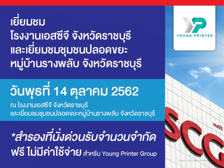 Young Printer เยี่ยมชม โรงงานเอสซีจี จังหวัดราชบุรีและเยี่ยมชมชุมชนปลอดขยะหมู่บ้านรางพลับ จังหวัดราชบุรี17 กันยายน 201915 พฤษภาคม 2023